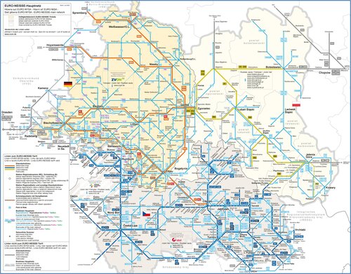 Transport rowerów owszem integralną jest częścią naszych usług. Koniecznie zwracamy Państwu uwagę na bilet EURO-NYSA! Bilet ten ważny jest na zaznaczonym obszarze całego trójstyku i kosztuje od osoby 40 PLN. Wersja grupowa biletu (do 5 osób) kosztuje 100 PLN! Do nabycia bilety EURO-NYSA są po polskiej stronie przy kasach biletowych KD na Dworcu Głównym we Wrocławiu, w Legnicy, Bolesławcu, Zgorzelcu, Wałbrzychu oraz Jeleniej Górze. Ważna wskazówka: bilety EURO NYSA uznawane są również kolejkach wąskotorowych w Żytawie (tu dodatkowo płacimy dopłatę historyczną w wysokości 5 € od osoby) jak i w Bad Muskau. Biletem EURO-NYSA także korzystamy także z komunikacji miejskiej w czeskim Libercu (łącznie z kolejką linową na Jested) jak i niemieckim Görlitz! Dokładna strefa ważności biletu EURO-NYSA podana jest pod linkiem poniżej, pod którym Państwu udostępniane są wszelkie pozostałe niezbędne informacje: